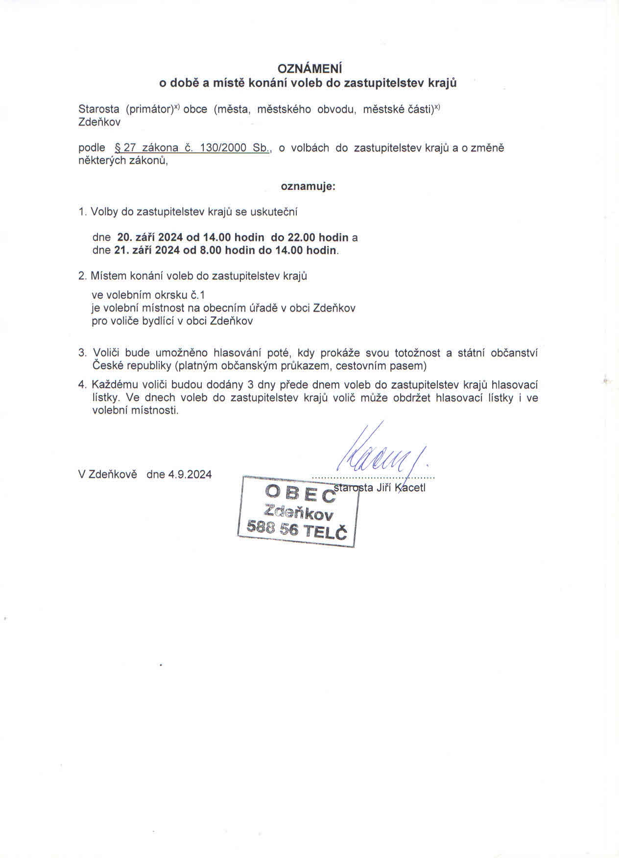| 17. 9. 2025 | 4. 10. 2025 | oznámení o době a místě konání voleb do Parlamentu ČR 2025 [PDF, 396 kB] |